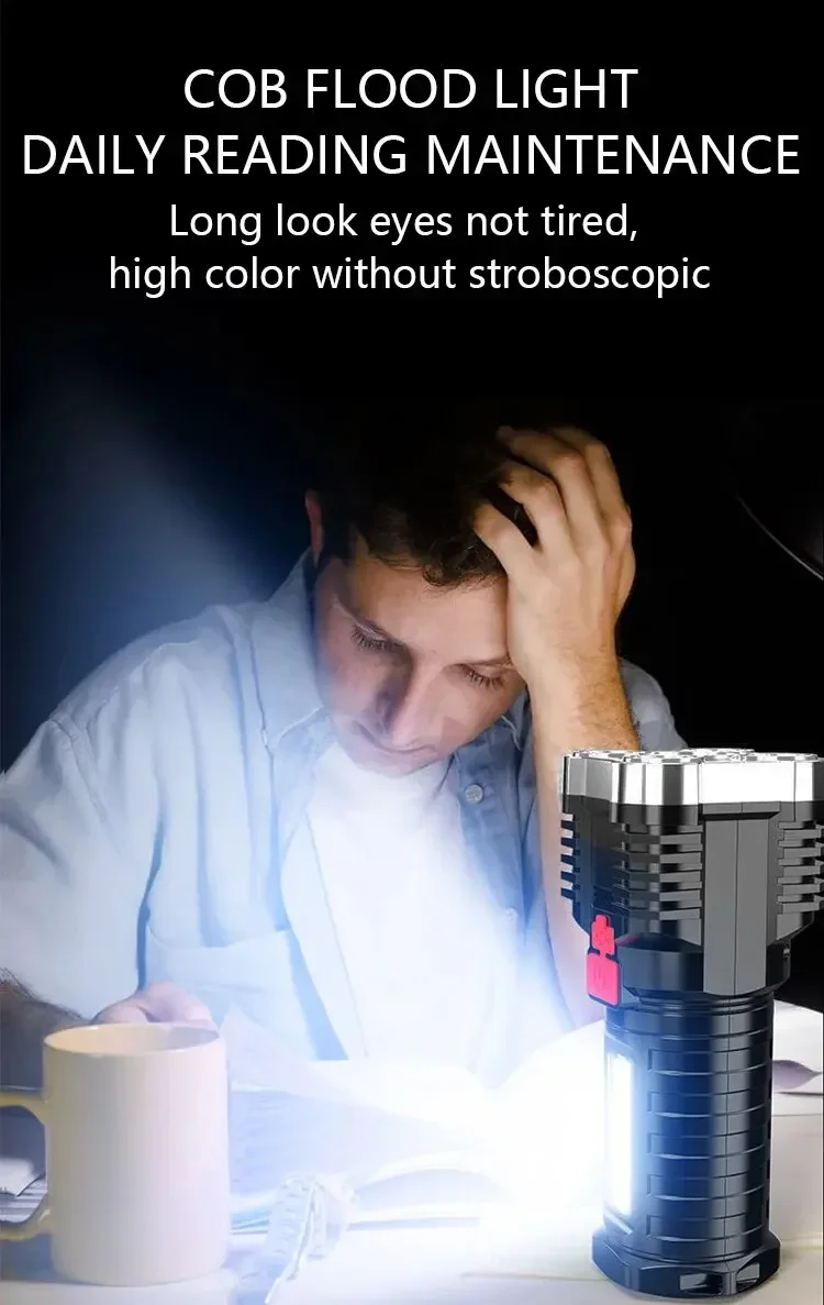 • Lanterna LED de alta potência:Esta lanterna LED de alta potência é perfeita para aventuras de acampamento, oferecendo iluminação superior em qualquer ambiente ao ar livre.
