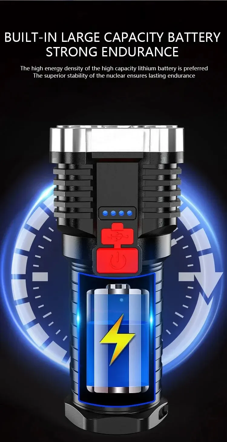 • Recurso de luz lateral:O recurso de luz lateral desta lanterna aprimora sua funcionalidade, tornando-a uma ferramenta versátil para vários cenários ao ar livre.
